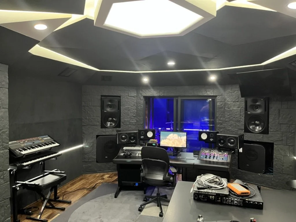 Hard pink studios is located in downtown Los Angeles. All the rooms have Room-within-a-room, multi layer construction with custom framing. Surface panels with LED lighting tracks. Lights are controlled via remote panel and app. Studio furniture is by Zaor. While Studio C has barefoot and Yamaha monitors, Studio A is graced with Genelec 1238A monitors and 7380A subwoofers installed within wall soffits. Outboard gear includes 500-series modules and a few choice pieces like a CL1-b and 1176 clone. All gear was carefully chosen to facilitate monster vocal takes as quickly as possible. Grace Designs m905 monitor controllers are used to switch between the different sets of speakers. Universal Audio Apollo x8 interfaces and patchbays form the central hubs for both rooms as they utilize a hybrid approach of in-the-box and some modest outboard gear.